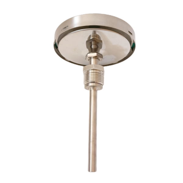 本廠生產(chǎn)的又金屬溫度計(jì)其保護(hù)管、節(jié)頭、鎖緊螺栓等均采用1Cr18Ni9Ti材料,表殼采用鋁板拉伸成型經(jīng)切削加工表面黑色電泳處理,表蓋與表盒采用環(huán)型雙層橡膠圈螺紋密封鎖緊結(jié)構(gòu),故儀表整體防水防腐性能良好,徑向型儀表采用彎管型結(jié)構(gòu),外型新穎、輕巧、美觀與眾不同。