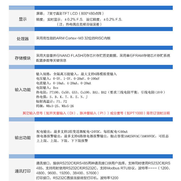R7100系列超薄寬屏彩色無紙記錄儀1-16路wn****輸入(可組態(tài)選擇輸入:標(biāo)準(zhǔn)電壓、標(biāo)準(zhǔn)電流、熱電偶、熱電阻、頻率、開關(guān)量、脈沖等)。可帶6路繼電器報(bào)警輸出,6路饋電輸出,4個(gè)變送輸出,RS232/485通訊接口可選擇,藍(lán)牙功能,GPRS功能以太網(wǎng)接口,微型打印機(jī)接口和USB接口;饋電輸出可以給傳感器供電;R7100具有強(qiáng)大的顯示功能,實(shí)時(shí)曲線顯示,歷史曲線追憶,棒圖顯示,報(bào)警列表顯示,掉電列表顯示。精致的外觀設(shè)計(jì)、人性化操作界面、穩(wěn)定的功能體現(xiàn)、可靠的硬件品質(zhì)、精湛的制造工藝,使R7100具有更高的性能價(jià)格比。