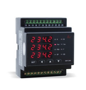 SWP-EM系列三相電力儀表采用xj****的交流采樣技術(shù),能分別測量電網(wǎng)中的電流,電壓,頻率,功率,功率因數(shù)等電參數(shù),可通過面板薄膜開關(guān)切換顯示內(nèi)容及設(shè)置內(nèi)部參數(shù)??捎肦S-485通訊接口與微機(jī)實(shí)現(xiàn)通訊,極大地方便了用電自動(dòng)化管理;也可將電量信號(hào)轉(zhuǎn)換成標(biāo)準(zhǔn)的直流模擬信號(hào)輸出;1路繼電器報(bào)警輸出。采用標(biāo)準(zhǔn)導(dǎo)軌式安裝,節(jié)約空間。